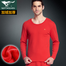 七匹狼本命年大红男士保暖内衣加绒加厚鸿运套装秋衣秋裤结婚套装