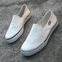 包邮正品回力春秋纯色帆布鞋男鞋女鞋白色工作鞋懒人一脚蹬甲板鞋