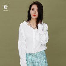 范思蓝恩春装蝙蝠袖V领雪纺衫长袖白衬衫女百搭韩范上衣宽松衬衣