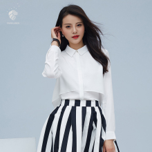 范思蓝恩假两件双层斗篷衬衫女长袖雪纺衫韩范打底上衣春秋白衬衣
