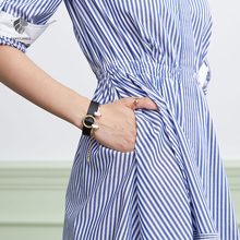 范思蓝恩蓝白条纹连衣裙七分袖韩版中长衬衫裙高腰裙子女夏a字裙