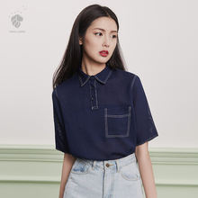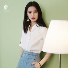 范思蓝恩立领衬衣女12星座刺绣雪纺上衣夏装白衬衫女短袖宽松韩范