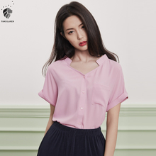 范思蓝恩蝙蝠袖V领雪纺衫上衣女夏短袖白衬衫女百搭宽松韩范衬衣