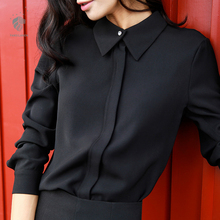 范思蓝恩雪纺白衬衫女长袖2017春装新款宽松黑色衬衣韩范职业上衣