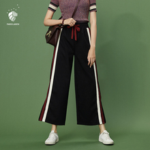范思蓝恩条纹侧开叉运动裤女宽松休闲裤子韩版春夏阔腿裤女九分裤