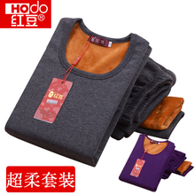 红豆冬季加厚加绒保暖男士女士大红本命年加大加肥保暖内衣套装