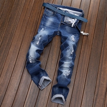 潮男士破洞牛仔裤男夏季薄款修身直筒宽松潮牌春秋个性乞丐裤子男