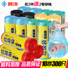 5卷靓涤自动收口垃圾袋加厚手提式家用抽绳穿绳厨房塑料袋中大号