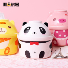 陶瓷泡面碗日式可爱陶瓷动物泡面杯汤碗套装大号带盖勺创意餐具