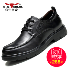 公牛世家男鞋春季英伦男士休闲商务皮鞋低帮真皮系带鞋子男牛皮潮