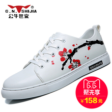 公牛世家男鞋2017春季新款男士板鞋休闲鞋百搭小白鞋印花潮流鞋子
