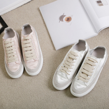 2017春韩版绸缎女鞋百搭小白鞋女学院风厚底松糕系带休闲运动板鞋