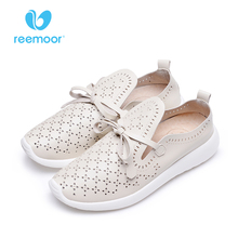 reemoor夏季新款休闲鞋镂空透气软底平底鞋小白鞋女睿慕女单鞋