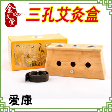 爱康竹制三孔艾灸盒 3孔艾盒 三眼艾灸盒 木头艾灸盒 温灸盒