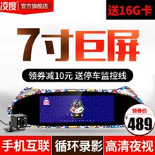 凌度行车记录仪高清夜视双镜头倒车影像后视镜导航测速电子狗一体