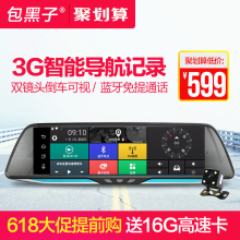 包黑子双镜头高清夜视行车记录仪带倒车影像智能导航测速一体机