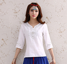 2016民族风女装夏装新款复古纯色绣花短袖t恤修身显瘦棉麻女上衣