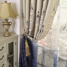 欧德罗 地中海飘窗短窗帘布料定制帘头客厅卧室全遮光窗帘