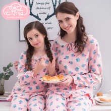 春秋季纯棉母女卡通女童亲子睡衣 宝宝女孩长袖亲子居家服套装