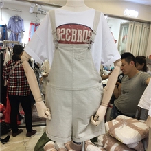 NA AN2017夏装新款翻边百搭学生背带裤女休闲宽松阔腿短裤潮