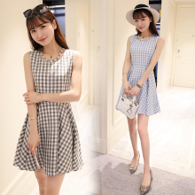 2017夏季新款女装日系甜美学院风小清新格子无袖背心连衣裙女学生