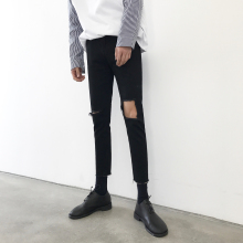 BANGBOY 夏季新款黑色破洞牛仔裤男