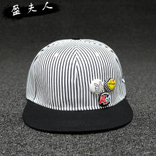 条纹图案帽子女休闲百搭棒球帽潮韩版嘻哈帽男檐平沿帽鸭舌帽逛街