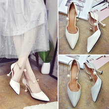 高跟凉鞋女夏天2017夏季新款串珠尖头女鞋潮细跟单鞋韩版百搭鞋子