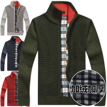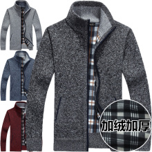 男装拉链开衫毛衣加绒加厚外套立领保暖休闲宽松男士针织衫春上衣