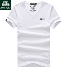AFS JEEP短袖t恤衫男装V领半袖夏季运动衫打底衫战地吉普宽松大码