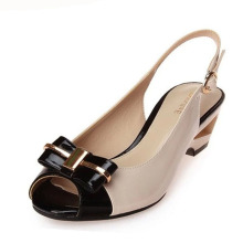 Daphne/达芙妮甜美休闲水钻蝴蝶结亮金属坡跟鱼嘴凉鞋1014303050