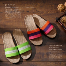 朴西夏居家亚麻凉拖鞋男女条纹日式防滑家居室内地板厚底棉麻拖鞋