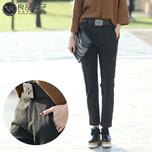 2017春夏新品加绒显瘦毛呢休闲哈伦裤宽松韩版西装裤小脚女长裤潮