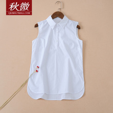 秋微翻领无袖衬衫搭配打底百搭中长款棉修身欧洲站不缩水白色女装