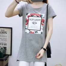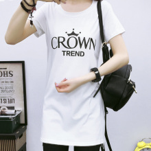 2017新款夏季大码女装百搭短袖T恤女中长款宽松显瘦上衣韩版体恤