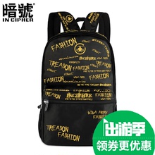 暗号背包韩版书包中学生女休闲双肩包男学院帆布包时尚潮流旅行包