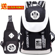 双肩包男中学生书包男时尚潮韩版初中学生高中生大学生女旅行背包