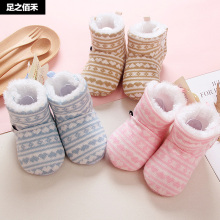 婴儿毛线鞋袜0-2岁 宝宝冬季袜子 点胶地板袜 加绒加厚学步袜