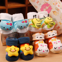 毛圈加厚婴儿袜子 0-1岁宝宝袜子 可爱卡通公仔袜 学步袜点胶防滑