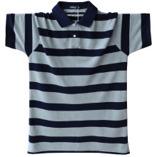 2017夏季纯棉男士短袖T恤条纹韩版翻领青年商务男装打底衫大码潮