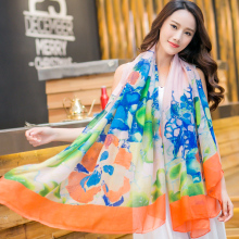 韩版春秋田园水墨印花围巾花朵丝巾女百搭两用大披肩防晒围脖纱巾