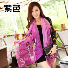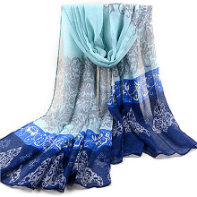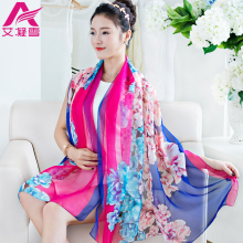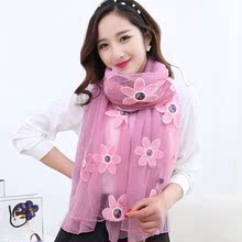 韩国版新款秋冬丝巾高档雪纺女士长围巾大披肩绣花沙滩巾保暖围脖