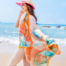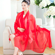 春秋季海边雪纺丝巾女士超长款围巾防晒披肩纱巾沙滩巾夏