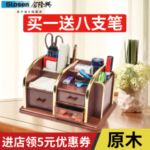 金隆兴创意木质笔筒多功能桌面笔筒遥控器收纳盒名片座盒放笔盒