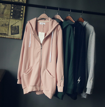 韩版卫衣女潮宽松bf风粉色卫衣外套女开衫拉链秋闪电带帽卫衣女