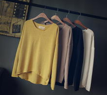 v领针织衫女套头薄款打底衫女 长袖 秋冬2016时尚新款宽松纯色恤