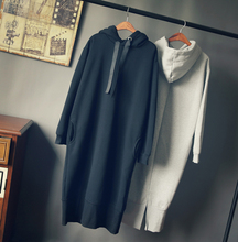 开叉加厚卫衣女冬加绒长款卫衣连衣裙秋冬带帽卫衣女加绒套头宽松