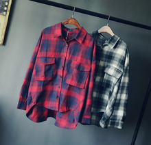 韩范黑白格子衬衫女外套学生红色格子衬衫女宽松长袖休闲衬衣潮