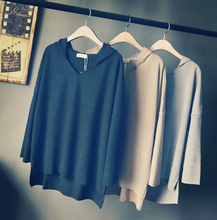 韩版简约宽松连帽秋天针织衫女秋季薄款套头女大码显瘦上衣内搭