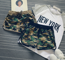 高品质欧美风热裤女夏运动 阔腿毛圈女士短裤外穿迷彩短裤女